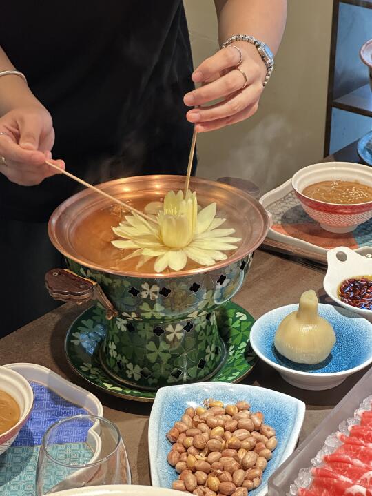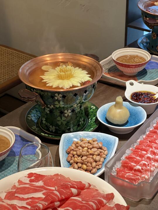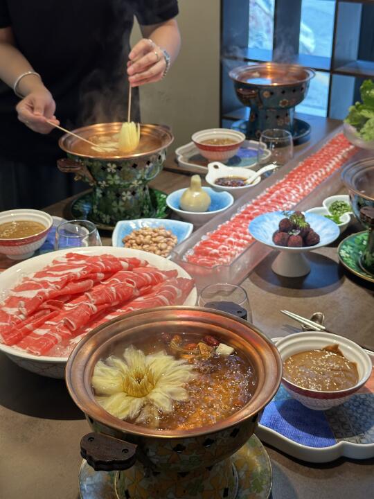 近期吃的最值的一笔👅 永远可以相信煤老板的审美 汾河边上的独栋别墅🏡确定不是艺术展? 吃火锅都给用的掐丝珐琅景泰蓝小铜锅 一朵莲花🪷盛放,中式氛围绝了啊 老北京的麻酱配鲜切羊肉,要是再来个黑金鲍 这才是生活!