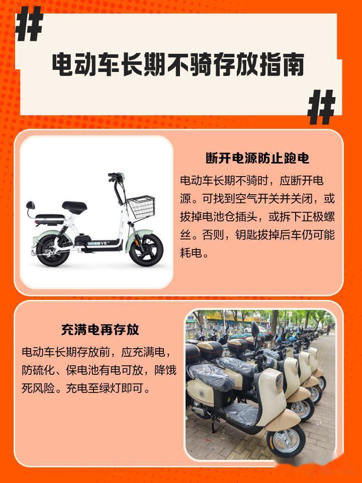 电动车如果长期放置不用不充电,时间长了电池会“饿死”充不进电。因为铅酸电池存在自放电率,随着电量下降,自放电率逐渐增加,长期不充电电池电量最终放光,想用的时候使用充电器电池没有任何反应充不进电,这就是俗称的“饿死”。电动车长期不用,应当将电池充足电,将车辆放置在干燥通风的环境中,每半个月对电池进行一次补充充电,可以预防电池电量过低“饿死”。