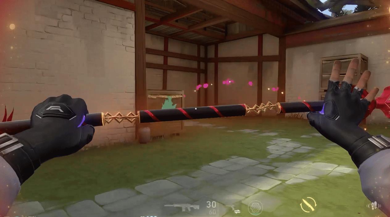 近战武器的设计更显巧思。刀身采用中国传统武术软兵器三节棍的形态,前端融合枪尖造型,这是瓦手首次推出的近战模组。检视时的甩动、切枪时的流转、挥砍时的轨迹,动作衔接丝滑流畅。既有传统兵器的韵味,又完美适配手游的操作逻辑,手感这块拿捏得很准。