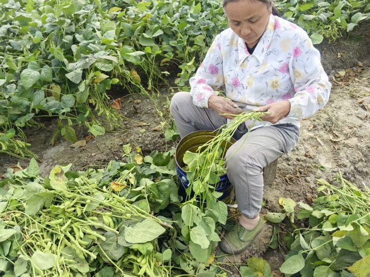 俞阿姨从益农骑着电瓶车过来,第一次到这边摘毛豆,光是找毛豆地就绕了几圈,她问记者几点了,说3点就要回去,要骑一个小时回家,过来的时候电量就发现不足了,怕等下天黑了,推都推不回家。