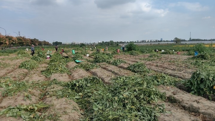 他说整个钱塘区有50多位像他这样的毛豆种植户,今年的产量较去年少一点,采摘工比往年都要紧缺,集中采摘就在十月底到十一月初,现在毛豆饱满,再过一周毛豆就要发黄变老了,也不好销售,一天一个价。按照正常的进度,每天要130人以上,现在差不多只有一半。”