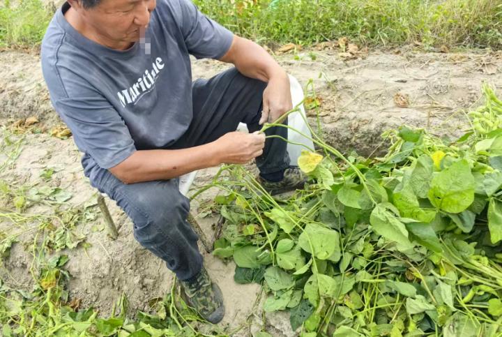 今天老林5点就到地里,他告诉记者,这块地里的毛豆还饱满,边上一号地的毛豆空壳的比较多,就摘不出活。老林平时收点废品,十月份就在周边摘毛豆,他的手机号毛豆老板都有,每到采摘季,老板们就会主动联系他过来采摘。