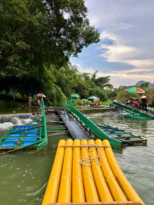 💚遇龙河:人工竹筏,漓江支流,有“小漓江”之称,以宁静田园风光为主。速度适中,有冲坝,下坝次数越多越刺激。一般为2人筏,还有多人竹筏。