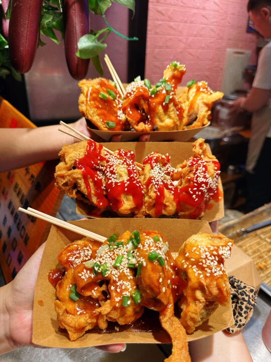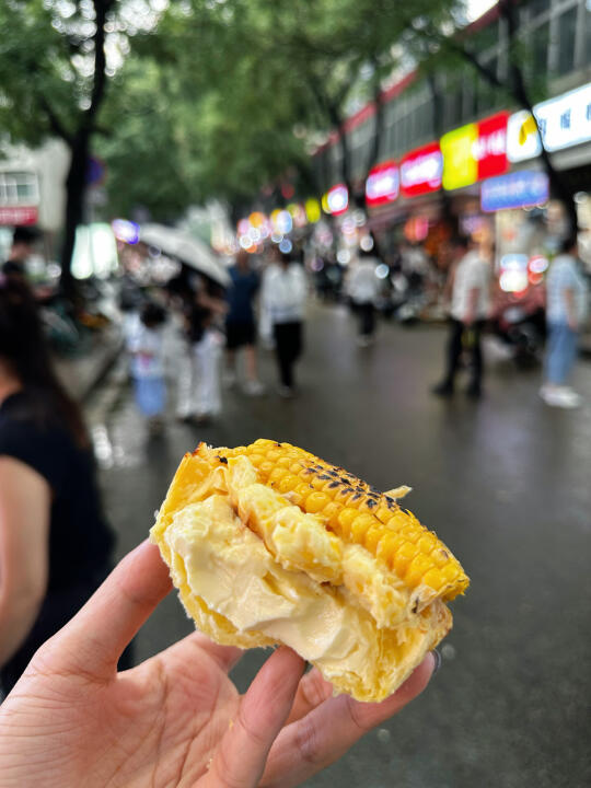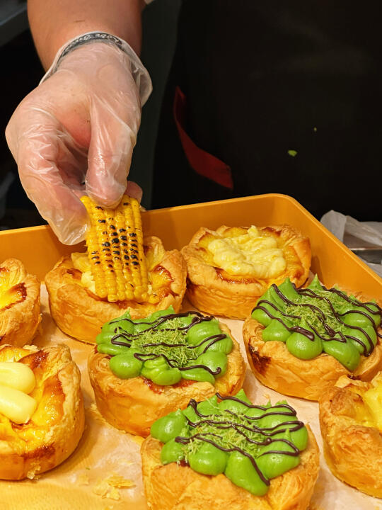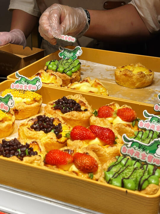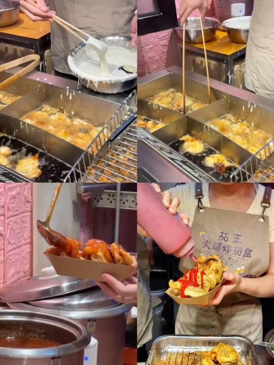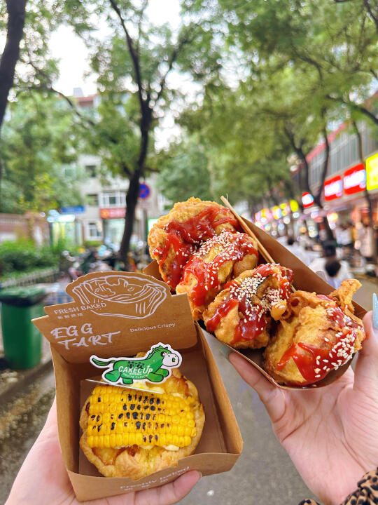 刚出炉的大蛋挞!还有刚出锅的鱼香大茄盒 这谁能忍住不吃啊‼️来老军营必吃👅 逛老军营经过!趴在满满漂亮蛋挞的柜子前走不动啦!!!各种漂亮!!超级香!!可以单个买!!刚出炉的太香了吧🤤!!!('ᴗ' )و金灿灿的玉米大蛋挞!奶香浓浓🥛还有玉米粒!挞皮酥酥脆脆的🫧好好吃!! 人手一盒的茄盒!!安排👅都是现炸的‼️外酥里嫩!一口下去酥酥脆脆的香!!有鲜肉的,牛肉的,还有大虾仁的✨点那个鱼香!好吃好吃!酥脆多汁!!!超满足‼️ 等茄子的时候,他家碗托也想吃‼️
