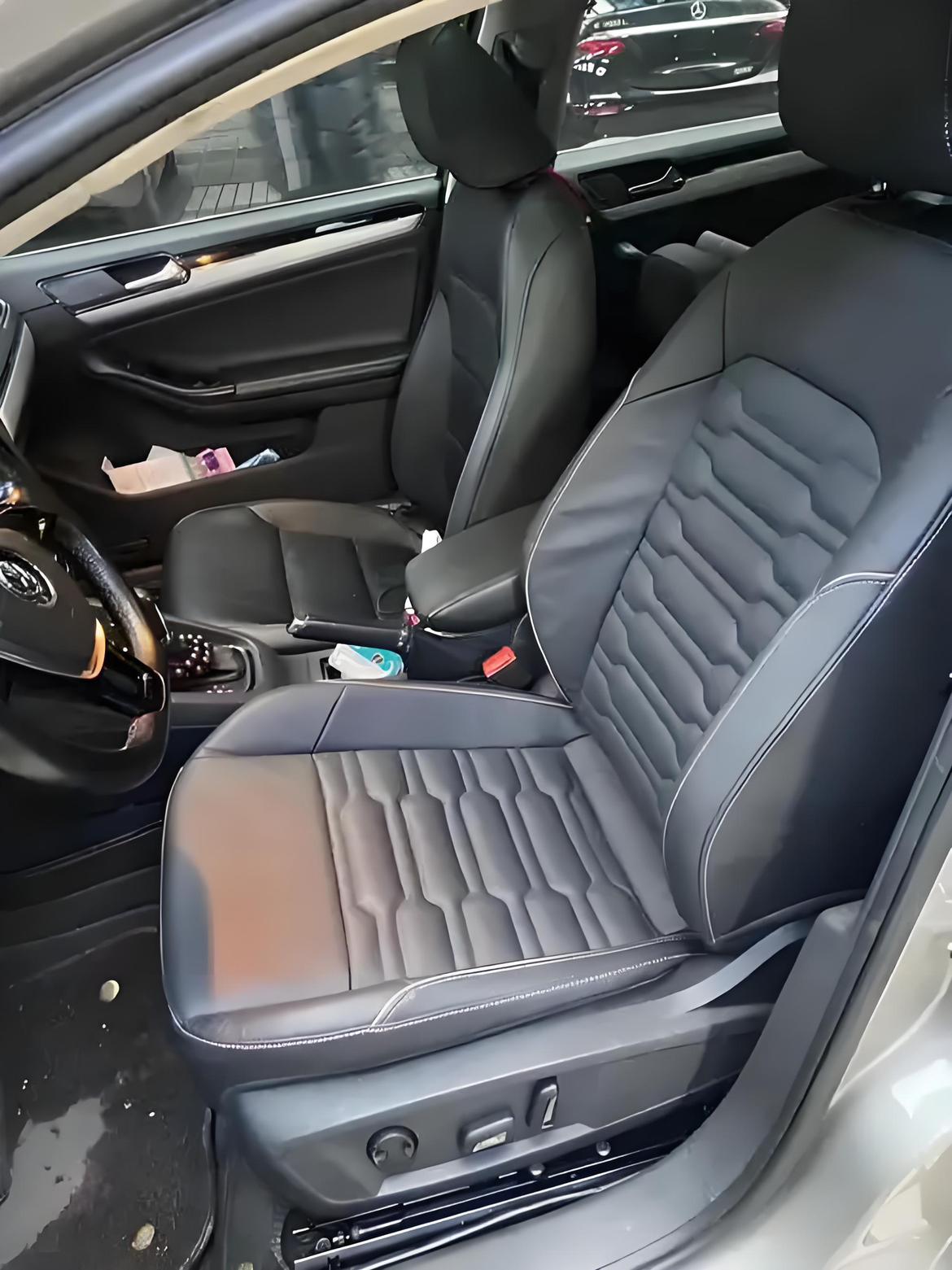 我自己的小车是速腾23款1.5t超越版,目前驾驶爱车一年半左右,今天来聊聊关于车的座椅吧: 1️⃣舒适度 开篇说到我是23款1.5超越版,这款是23款的中配配置,全车座椅材质如图二是仿皮。仿皮材质,坐上去舒适透气,填充物软硬适中,整体不塌陷也不硌人,倾斜角度合理,不论是驾驶位或者乘客位都能很好的乘坐,不会存在角度太低或者太高导致的不适应。不过,因为是中配,所以我这款车座椅只有全座手动前后上下调节,没有顶配的电动座椅调节、腰部支撑、通风加热等配置。所以打分的话,满分10分打7分,合格但不至于很高。 2️⃣增加舒适度配置 上面说到,我的车是手动调节,所以可以看出我对电动座椅调节比较向往。如图三所示,这是车友群一个车友分享的电动座椅,电动座椅有12向调节功能,相比手动座椅调节角度更细致更平缓,能够找到更合适的角度乘坐,对驾驶员和乘坐人来说都更为舒适,推荐指数8.5分 老司机特别是长途开的多的老司机,肯定在长时间驾驶后会觉得腰部很累颈部肌肉紧绷,因为原车设计出于安全考虑不是完全支撑的,所以腰部支撑和颈部支撑就悬空。那么,这两个部位支撑就对老司机来说是很有必要,我自己是配备了腰靠和颈枕的,这两个东西消费不高但是带来的舒适度很高,性价比极强。当然,如果车辆自带腰部支撑功能,那相对来说更为舒适。腰靠和颈枕选择多样,建议想入手的车友们对比后选择最合适自己的,不指定具体品牌或者样式。这两个推荐指数9.5分 我们处于四大火炉之一的山城,夏天来了完全是大蒸笼,上车后空调打再冷屁股后背都是汗湿的,此时座椅通风就派上用场。开启座椅通风,风从底部往背部起来,让汗湿的后背也能享受凉爽的感觉,可以说是一个很有必要的提高座椅舒适度功能。在温度较低的地方,车友们会选择通风和加热一起配置,这样冬暖夏凉,也是很舒适。此功能因地制宜,所以推荐指数8.5分 以上就是我的爱车座椅舒适度以及想到提高舒适度的配置,还有哪些功能或者配置,欢迎评论区补充!