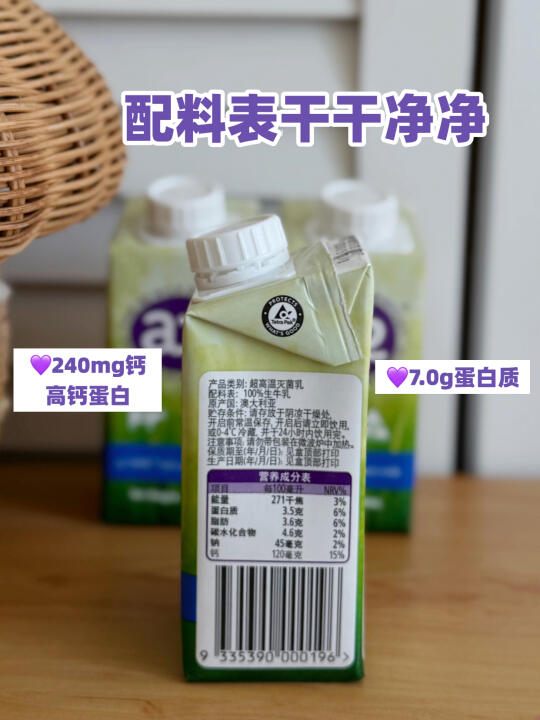 而且它的营养还尤为丰富,妥妥的"成长加油站⛽"!每瓶含有7.0g蛋白质和240mg钙高钙蛋白,这高营养密度,当孩子成长的"火车头"🚆,再合适不过了!更香的是,它的成分表干干净净,只有生牛乳,没有杂七杂八的添加剂,不给宝宝添负担,安然度过转奶期!