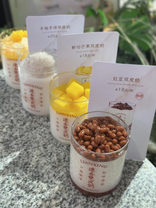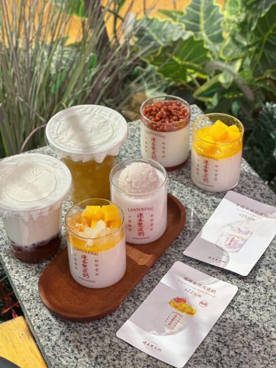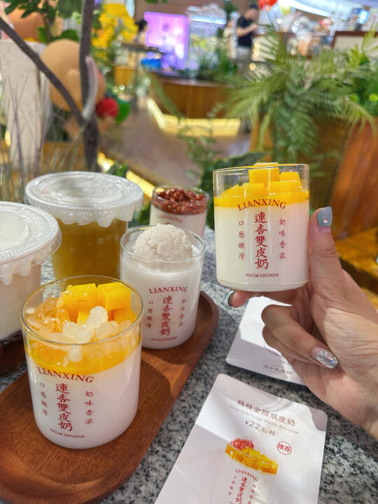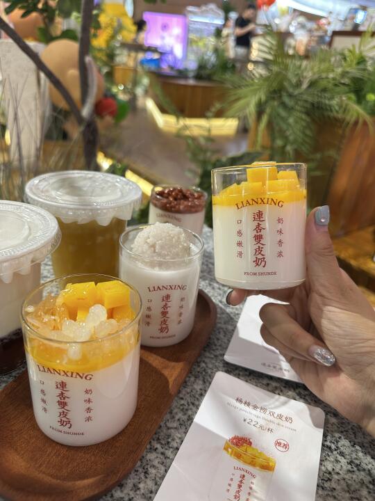 终于把连杏盼开业了🧨在长沙回购N次的双皮奶!!🥧还有还有期待能吃上第一炉的蛋挞👅 原味就是经典!!他家可是「金榜双皮奶」入口超超超细腻!冰冰凉凉带着奶呼呼的香🥛经典无敌! 🥭杨枝金捞双皮奶!新宠!芒果选的超好!料多到爆!芒果丁🥭、西柚粒、脆啵啵下面是双皮奶!清清爽爽中带着奶香! 期待开业啊‼️‼️‼️据说是明天哦‼️‼️