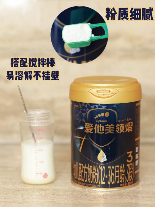 在吸收力方面,配方同样给力,不仅有天然乳脂,还有达新国标2倍的高含量OPO,促进钙与脂肪更高效吸收,宝宝肚肚舒服了,吸收好了,自然小身板壮实有活力啦~奶粉粉质也很细腻,搭配搅拌棒更好冲泡,不会挂壁。淡淡奶香味,我家妹妹每次都喝得津津有味,拽着奶瓶不肯撒手呢!这小模样,老母亲心都要化了~