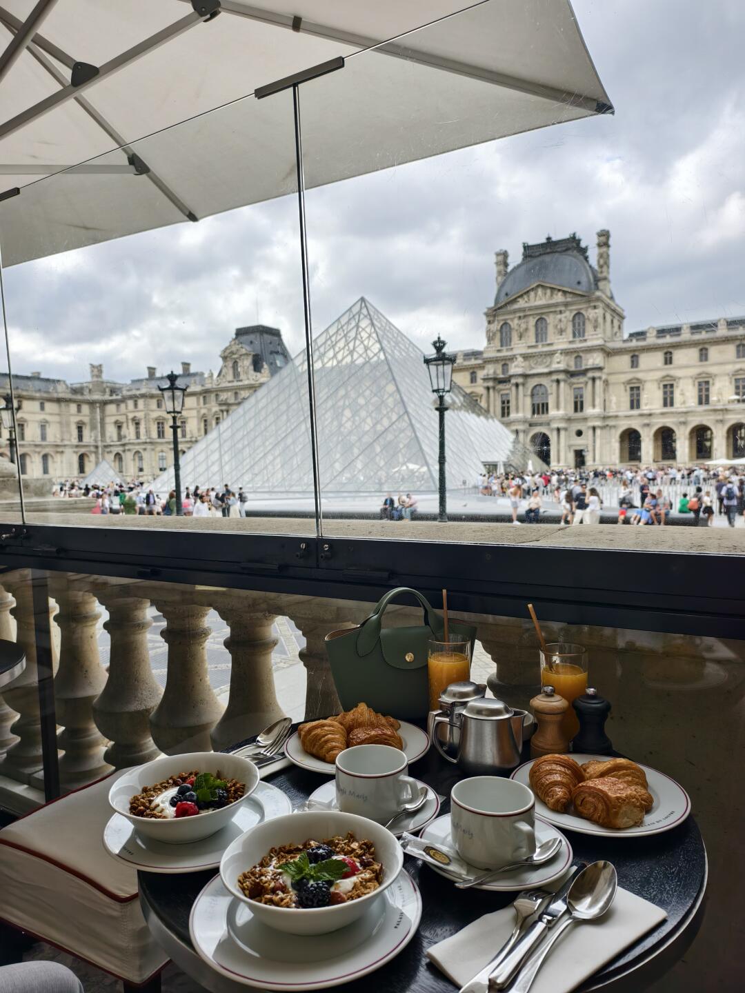 p4-5 卢浮宫里的餐厅Le cafe marly,很火,需要提前在官网预定,而且每桌只能吃一个小时,到时间会被服务员提醒,可以吃brunch也可以随便点杯咖啡☕️