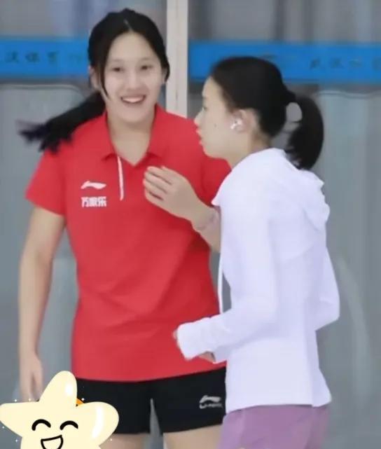 真是女大十八变,越变越好看。现在,扎马尾束的陈芋汐,不但俏丽,清新,灵秀,更显成熟和知性。小丫头已经是大姑娘了,这孩子成熟在思想和心智上,不但听话,还非常认真刻苦,知道怎样去学习,去努力,不但自己优秀,还带领师弟师妹们一起向前冲。和她说话的美女是谁,看着像教练陈若琳,好像又不是。