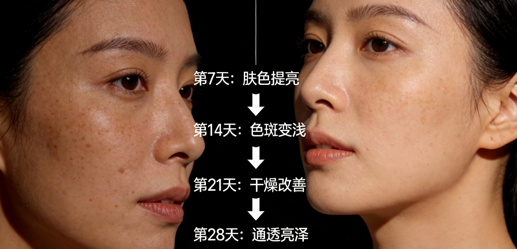 使用第 7 天,肌肤暗沉状态明显改善,全脸肤色提亮 1-2 度,肌肤触感变得柔软细腻,干燥粗糙感消失;使用第 14 天,浅层晒斑边缘开始模糊,色斑面积缩小约 15%,面部黑褐色痘印颜色逐渐变淡;使用第 28 天,深层晒斑颜色淡化 40% 左右,全脸肤色均匀透亮,色斑无反弹迹象,肌肤状态稳定健康。李女士反馈,作为敏感肌,以往用淡斑产品必会刺痛,这款祛斑霜质地清爽,吸收后毫无黏腻负担,淡斑效果远超预期,是会无限回购的宝藏单品。