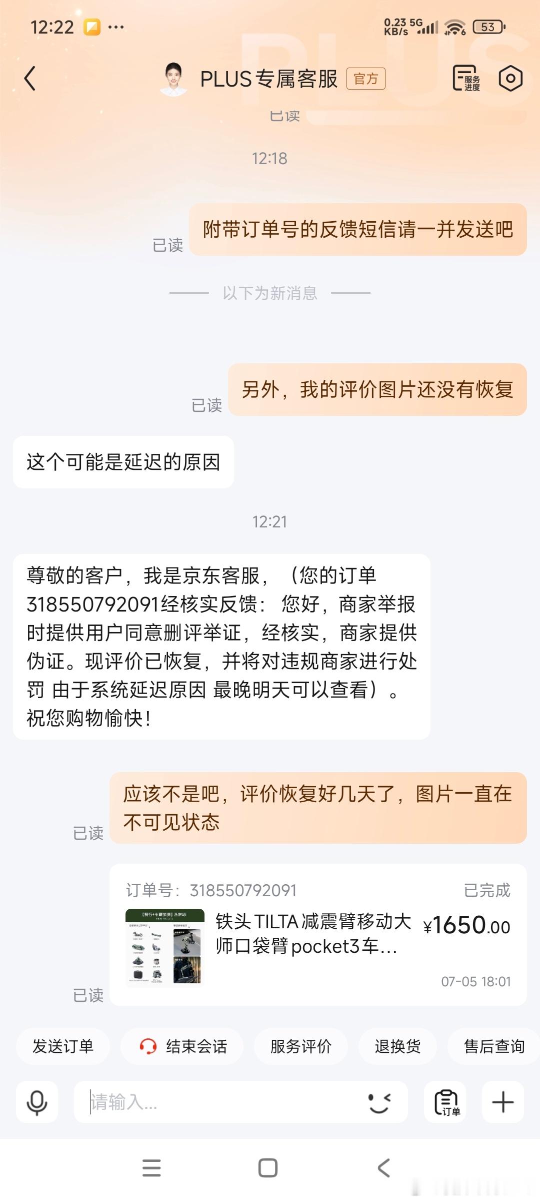 我最近有在京东花1650块买了个满配的mini减振臂,到手之后发现他们的减振座设计不合理,导致Pocket3在车尾拍摄的时候会有一侧存在较大的死区,直接耽误了我的拍摄,我肯定没法给好评了吧,但我评价的时候还是克制地提了一些建议,结果我在京东的评价被吞了。