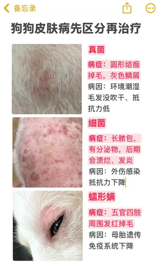 如果后续再有皮肤病方便自查,也希望给其他狗狗一些参考,不要没区分好是什么皮肤病就乱用药。
