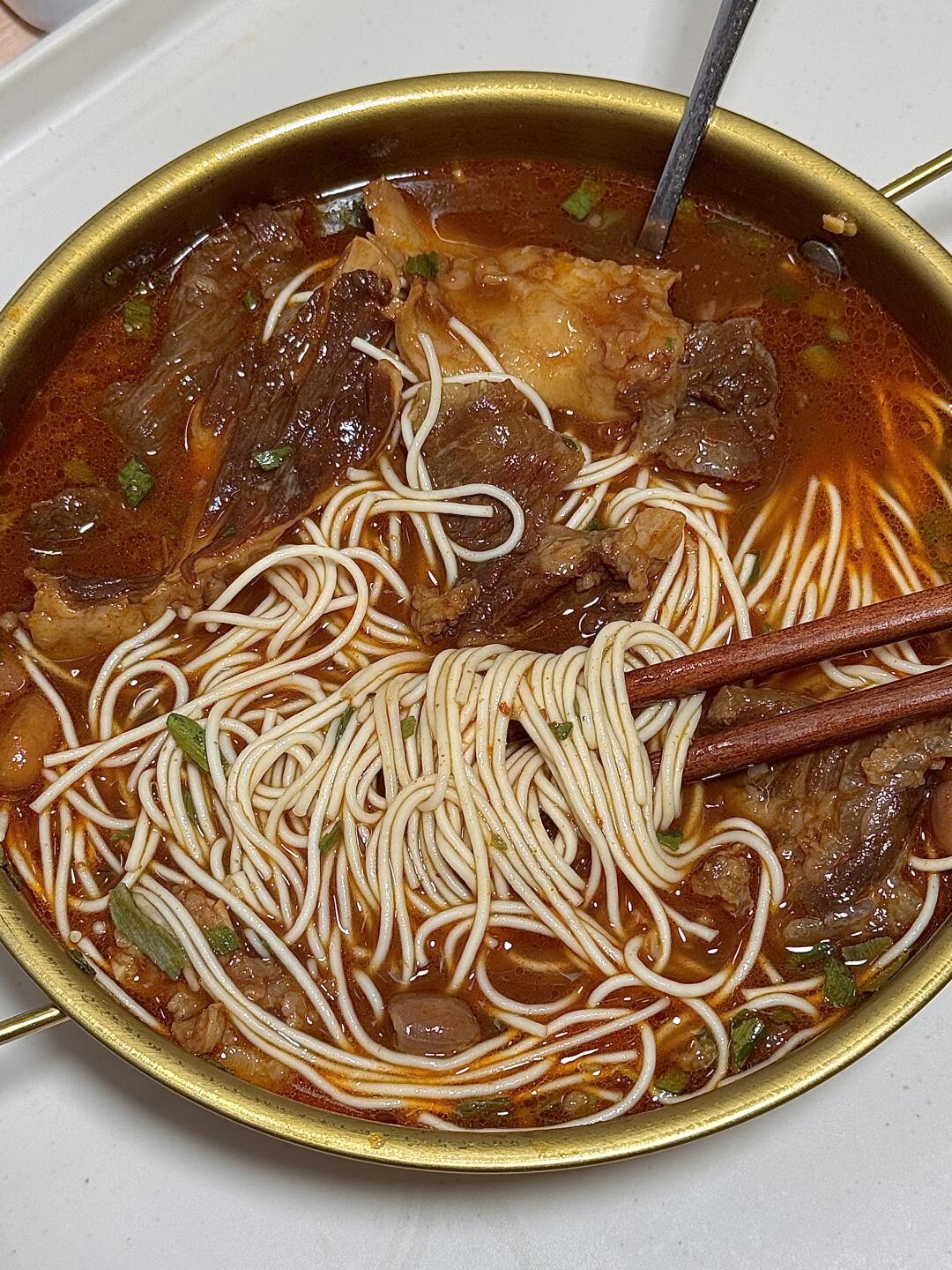 惊呆了,你有这么高质量的泡面进入中国🇨🇳… 大块的牛腩肉,软烂入味,一点也不柴,跟刚出锅的一样好吃,根本尝不出是泡的 面条细细的口感弹弹的,有点像兰州拉面 番茄汤汁也很浓郁,还有酸萝卜酸甜开胃一起吃刚刚好 这次在家也可以快速吃到番茄牛腩面了!