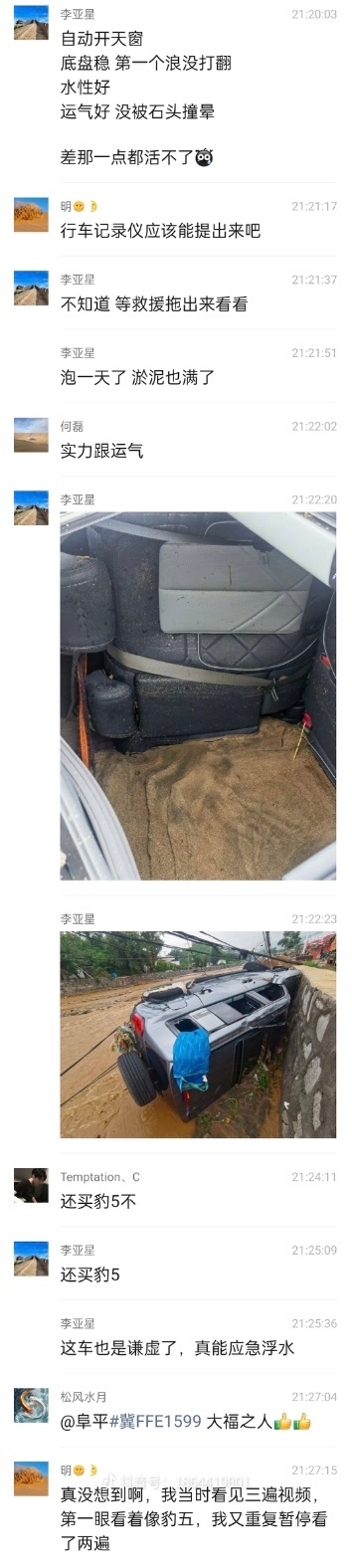 河北阜平的暴雨里,有位豹5车主的故事让人动容——带着拖车绳去救人的他,反被山洪连人带车冲走。当洪水像野兽般撕扯着车身,豹5却用钢筋铁骨撑起了"生命结界":车架在撞击中纹丝不动,低重心设计死死"钉"住洪流,危急时刻天窗自动弹开...这哪是车啊,分明是洪水中托起希望的诺亚方舟!#救援英雄遇洪水奇迹生还#