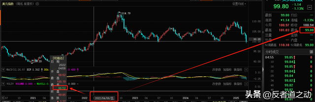 先看几个指标:美元指数、美国10年国债利率、黄金、日元汇率、人民币汇率。美元指数一度跌至99,为2022年4月8日以来新低、收盘是20224年4月8日以来第二低点,在100以下,属于弱势。美国10年国债利率自加关税以来起涨,到了4.5%附近。COMEX黄金再创历史新高,沪金更强势,最近日线量价齐升。日元对美元汇率大涨,人民币汇率先跌后涨、回到加税前。综合这些指标的结论就是,美国加关税是坑了自己,股债汇3杀了。