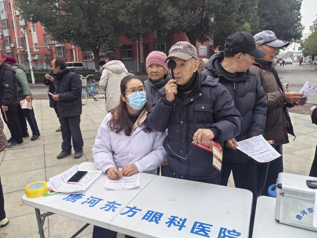活动现场,唐河东方眼科医院的医务人员早早搭起了检查台,摆开视力表、备好眼底镜,还精心准备了图文并茂的护眼科普手册。广大居民有序排队,测量视力、检查眼睛,医生们耐心解答着各种疑问。