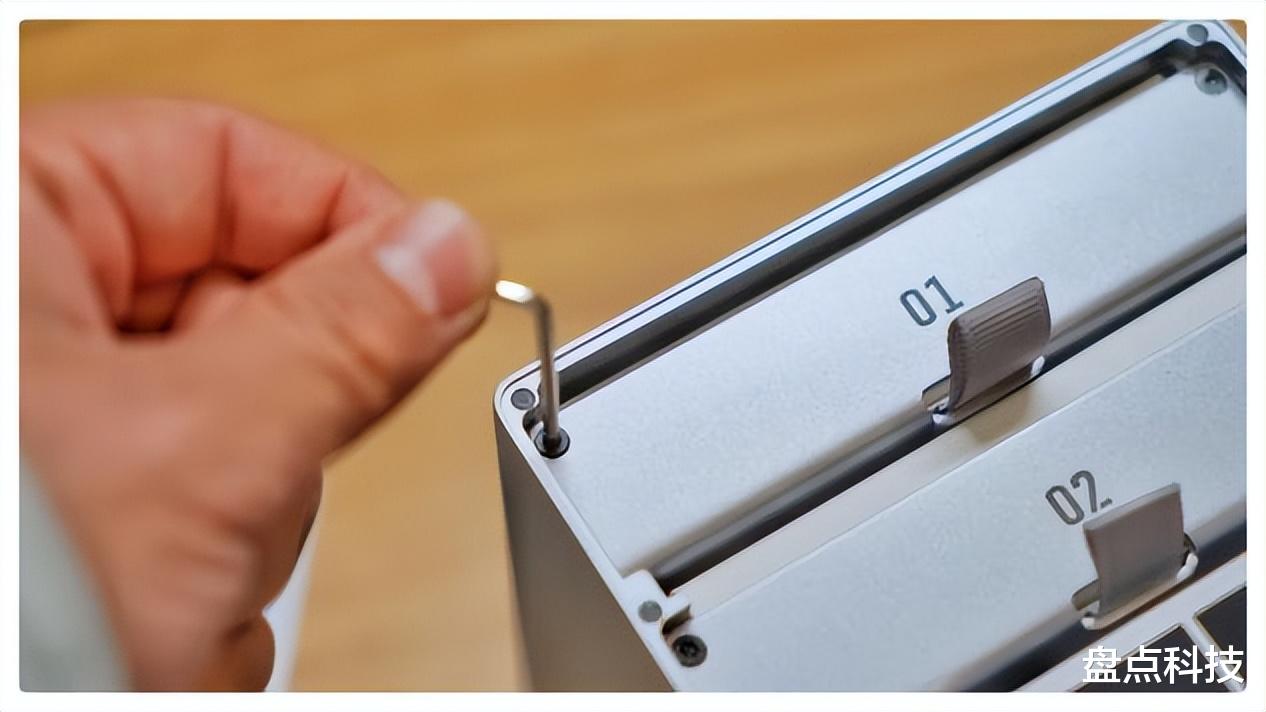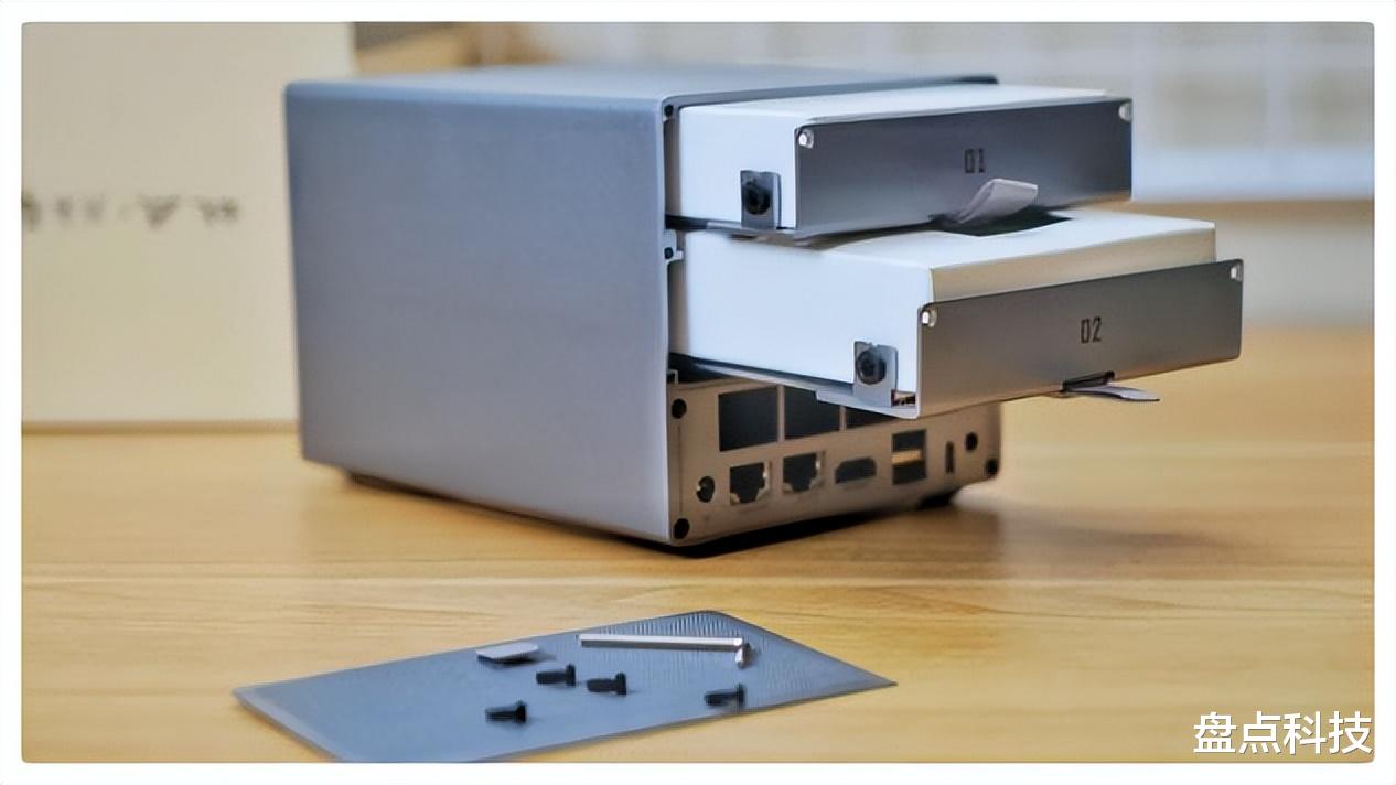 ③模块化“抽屉式”结构:通过隐藏工具拧下螺丝,你会发现它的内部像一个精致的抽屉,硬盘和主板都可以托盘抽出,就是主板需要点技巧和力气(盘哥就没折腾了),这样维护、升级都很方便。更意味着未来可通过更换主板模块来升级核心,实现硬件同步升级,这有点太良心了!