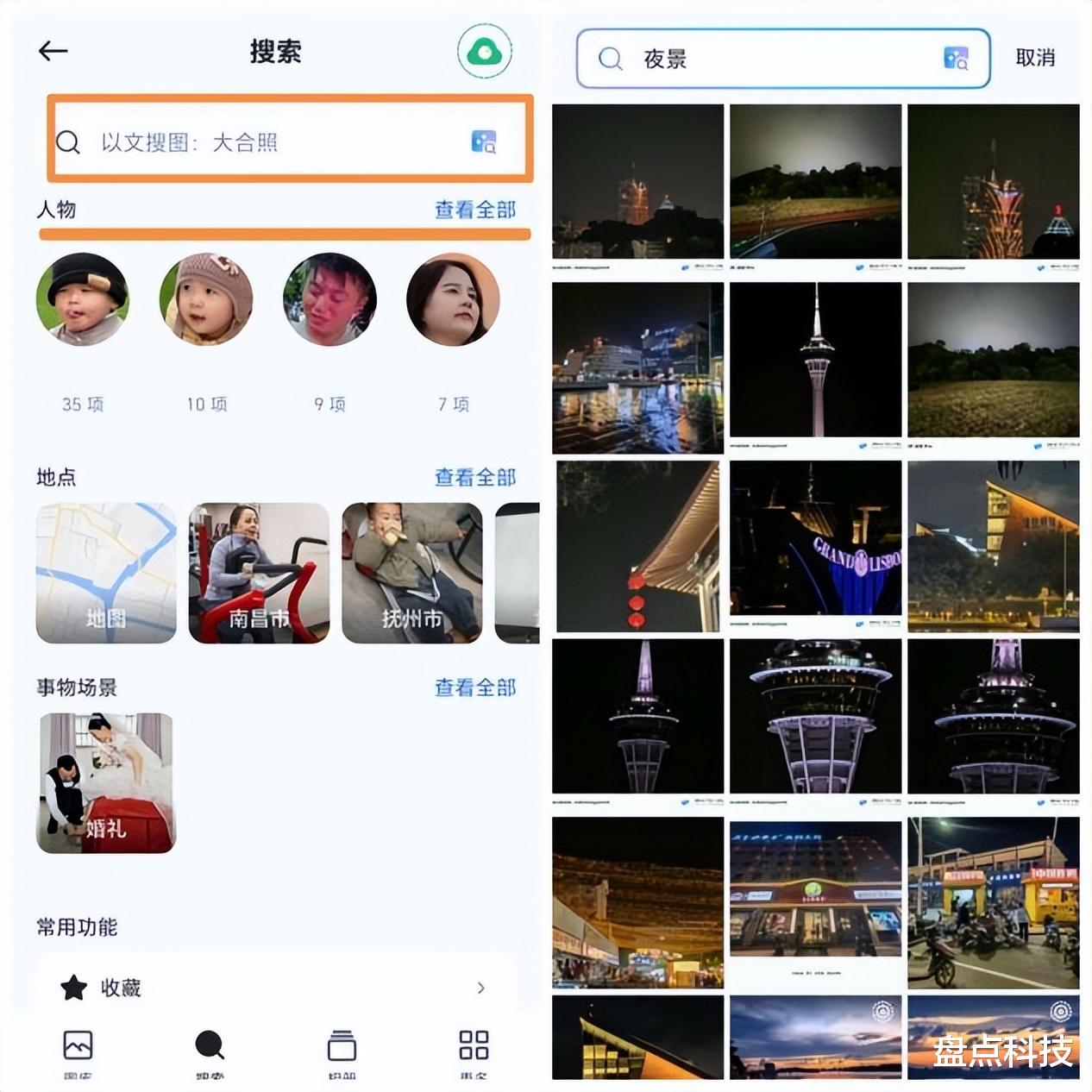 值得一提的是,手机连接WIFI后,新照片和视频就会自动、安静地备份到NAS,做到无感备份!不仅如此,备份完成后,系统会在后台自动进行AI分析。你可以在App的“搜索”页,按人物、地点、事物(如“食物”、“文档”、“猫狗”)等分类浏览,或直接用文字搜索(如“2023 生日 蛋糕”)。