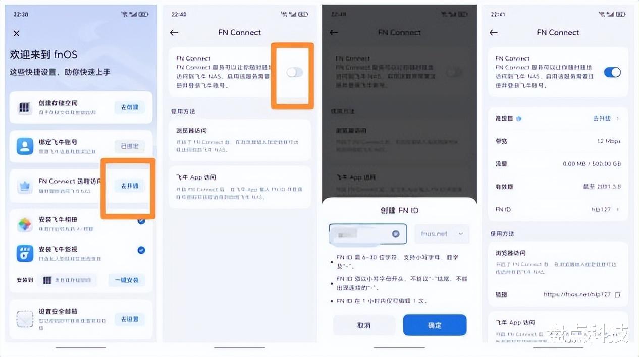 为了能够更方便远程访问你的NAS,这里一定要记得开通“FN Connect远程访问”,创建FN ID,这样在手机或者电脑浏览器输入你的指定链接,登入FN ID和账号密码就可以远程访问你的NAS内容!