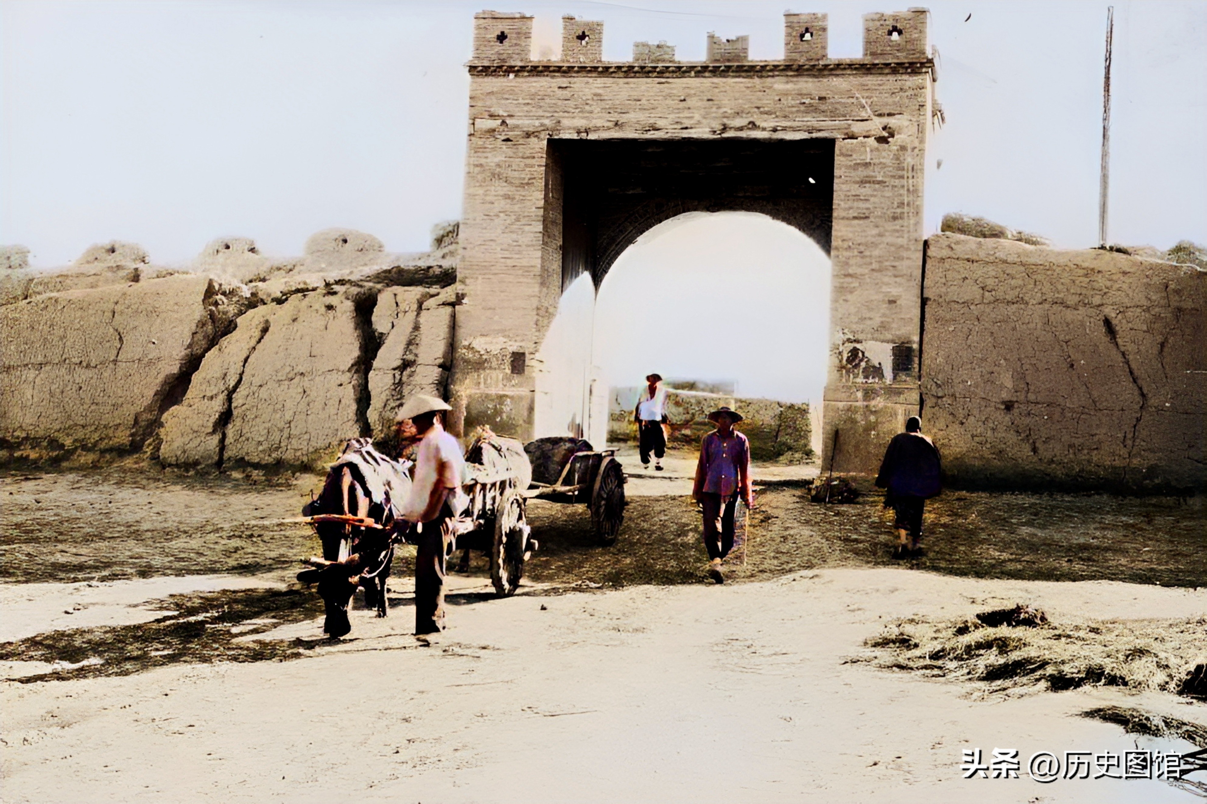 这张照片,拍摄于蒙古自治区赤峰林西县西城门前,几名当地人正从城门下经过。当时的林西县隶属热河省。