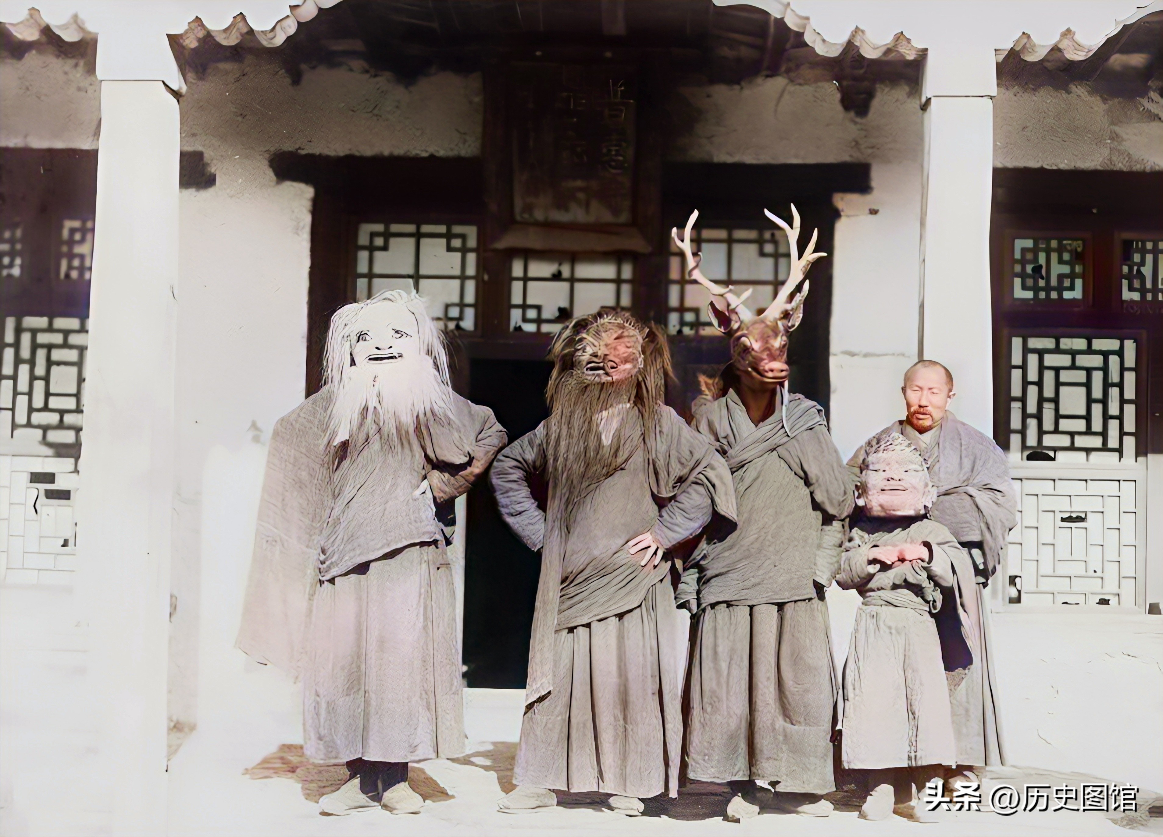 在内蒙古索伦的喇嘛庙举行的祭典仪式上,几名僧侣头上戴着奇怪的动物面具,看上去很神秘。