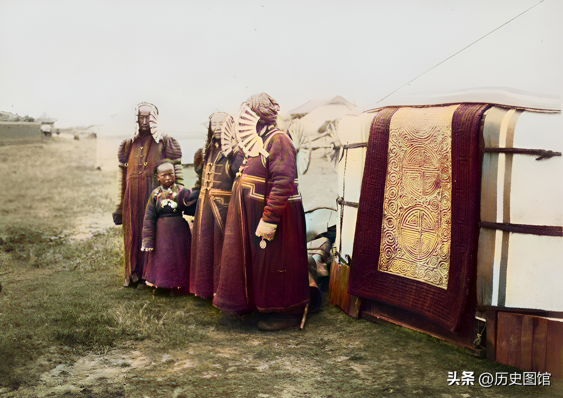 30年代,几名蒙古女子前去参加喇嘛庙祭典。为此,她们身穿盛装,准备领着孩子前往。