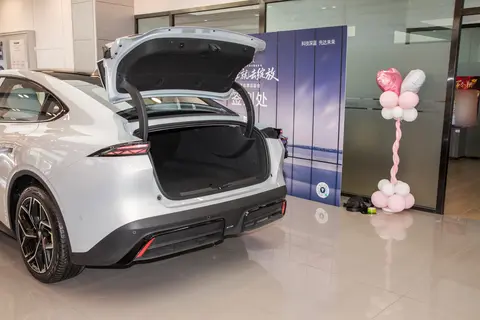 坐进后排,我 180 厘米的身高,腿部还有两拳多的空间,完全不会觉得拥挤。后备箱的常规容积也够用,平时放几个行李箱或者周末出去玩带点露营装备都没问题,如果需要装大件物品,把后排座椅放倒后,空间还能再拓展不少,实用性挺高的。车内的双层中央岛台设计看起来简洁大气,15.6 英寸的向日葵屏摆在中控位置很显眼,还能根据需求调整角度,配合 AR-HUD,开车的时候看导航信息也方便,不用老是低头看屏幕。怀挡式换挡机构也挺有意思,不仅操作起来顺手,还释放了中控区域的空间,放个手机或者水杯都很方便。细节上,绿色的刹车卡钳和 19 英寸的轮辋,也进一步强化了它的运动基因,看得出来设计师在这些小地方也花了不少心思。