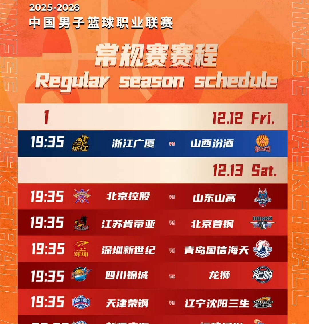 CBA新赛季于12月12日开始,山东男篮首场比赛是12月13日,客场挑战北控男篮。