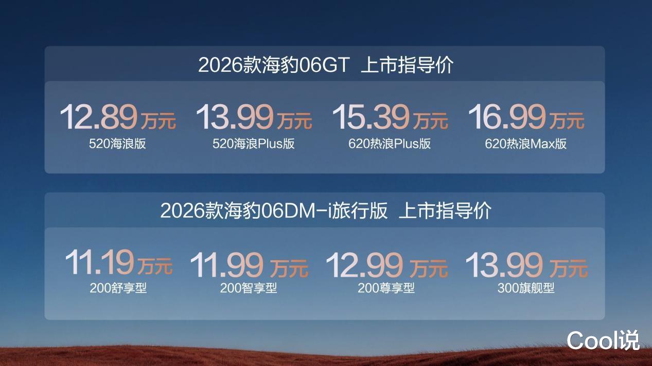 2026款海豹06GT官方指导价为12.89-16.99万元,2026款海豹06DM-i旅行版官方指导价为11.19-13.99万元,两款新车还为用户提供涵盖购车、选装、养护等在内的多项权益,让用户真正实现无忧用车,2026款海豹06GT用户更可享受1年闪充补能权益,尽情领略全场景自由闪充的科技魅力。