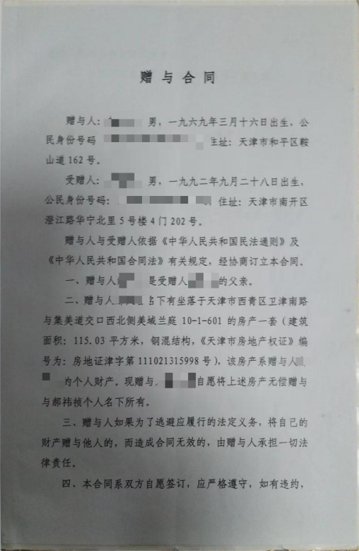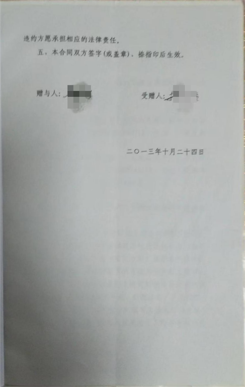 (赠与合同,刘女士提供)