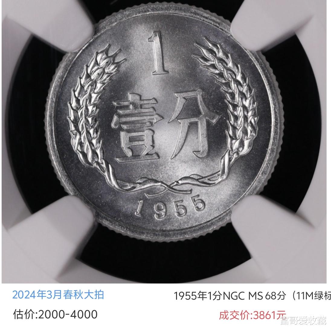 上面这枚品相较好的1955年1分,估价达到了4000元。