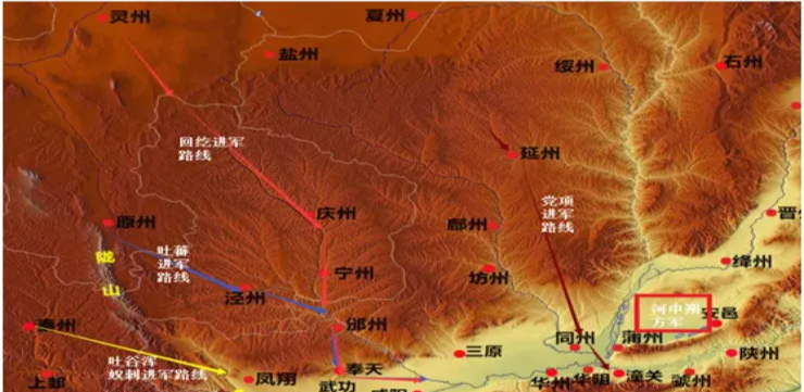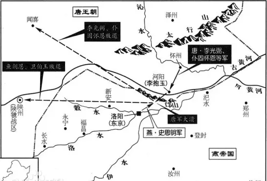 二、仆固怀恩对唐忠心1.对唐忠心不二,力战安史叛军755年范阳节度使安禄山起兵叛乱,一路势如破竹,唐朝闻知消息后,一方面派人防守,一方面紧急调遣河西、陇右、安西、北庭大军入援,但潼关之战因哥舒翰被唐玄宗催战导致战败,唐朝中央紧急出逃,马嵬坡之变后太子李亨北上灵武,获得朔方军支持后即位。12月,仆固怀恩即以左武锋使的身份随领导人朔方节度使郭子仪攻打大同的安史叛军高秀岩部,一战既克;又在背度山歼灭叛军将领薛忠义部七千骑,取马邑,打通了大同和太原的联系。756年2月,仆固怀恩转受李光弼领导,参与了针对史思明的常山、赵郡、沙河、嘉山等诸多战役,在期间出了大力,尤其是嘉山战役,一战大败史思明,斩首四万级,生擒五千人,获马五千匹,史思明披头散发赤脚逃奔博陵,史书评价“怀恩功居多”。参与叛军的铁勒部同罗骑兵7000人逃奔河套地区,唐军负责拦截,仆固怀恩之子仆固玢战败投降叛军后逃归,满腔忠心的仆固怀恩大怒并杀了仆固玢。将士无不震动,于是大破同罗骑兵。757年2月,仆固怀恩又转战攻克冯诩、河东二郡,虽然其后不久吃了败仗,但在757年4月的三原之战中,郭子仪以仆固怀恩及王昇、陈回光、浑释之、李国贞等五将伏兵于白渠留运桥,仆固怀恩率回纥兵大破李归仁。9月,仆固怀恩率军从广平王李俶(后来的唐代宗)与叛军战于沣水香积寺,战中,唐军前军后退,在李嗣业率陌刀队顶住的同时,安史叛军派骑兵企图偷袭唐军侧后,关键时刻仆固怀恩率回纥4000精锐骑兵歼灭偷袭叛军,避免战役失败,随后仆固怀恩又率回纥兵与唐军主力夹击叛军,叛军大败,唐军斩首6万,为收复长安奠定了基础。本来仆固怀恩认为叛军即将逃跑,反复劝说李俶“归仁、守忠,贼之骁将,骤胜而败,此天赐我也,奈何纵之!使复得众,还为我患,悔之无及。战尚神速﹐何明旦也。”要求给予自己200骑兵追击叛军,如是四五次建议广平王李俶派精骑追击,但李俶认为唐军疲累至极,遂拒绝追击,最终白白放跑了叛军将领,给平叛增加了阻力,真是愚不可及!757年10月,唐军和叛军在陕州新店展开大战,叛军模仿唐军在香积寺之战的战术背山列阵,唐军初战不利,关键时刻仆固怀恩率回纥骑兵袭击叛军后背,郭子仪趁机与仆固怀恩夹击叛军,严庄和张通儒逃奔洛阳,随后不战而逃。此战仆固怀恩功劳巨大,唐肃宗封其“加开府仪同三司,鸿胪卿同正员,同节度副使。十二月,封丰国公,食实封二百户”。758年9月,仆固怀恩在郭子仪领导下大破安太清,攻下怀州和卫州,和叛军战于相州愁思岗,“凡经五月,常为先锋,坚敌大阵,必经其战,勇冠三军”,因功升朔方行营节度使、爵封大宁郡王,迁御史大夫。仆固怀恩另一个儿子仆固玚与其父一样英勇善战,常常作为唐军破敌先锋血战叛军,仆固怀恩父子可谓不负大唐。759年,仆固怀恩又在李光弼领导下大败安史部将周犬,擒徐瑛玉、安太清,拔怀州,期间“皆摧锋陷敌,功冠诸将”。相州兵败后,仆固怀恩随李光弼驻守邙山,唐肃宗以其功高加工部尚书,不久后唐代宗即位,封其陇右节度,不久后改朔方行营节度。