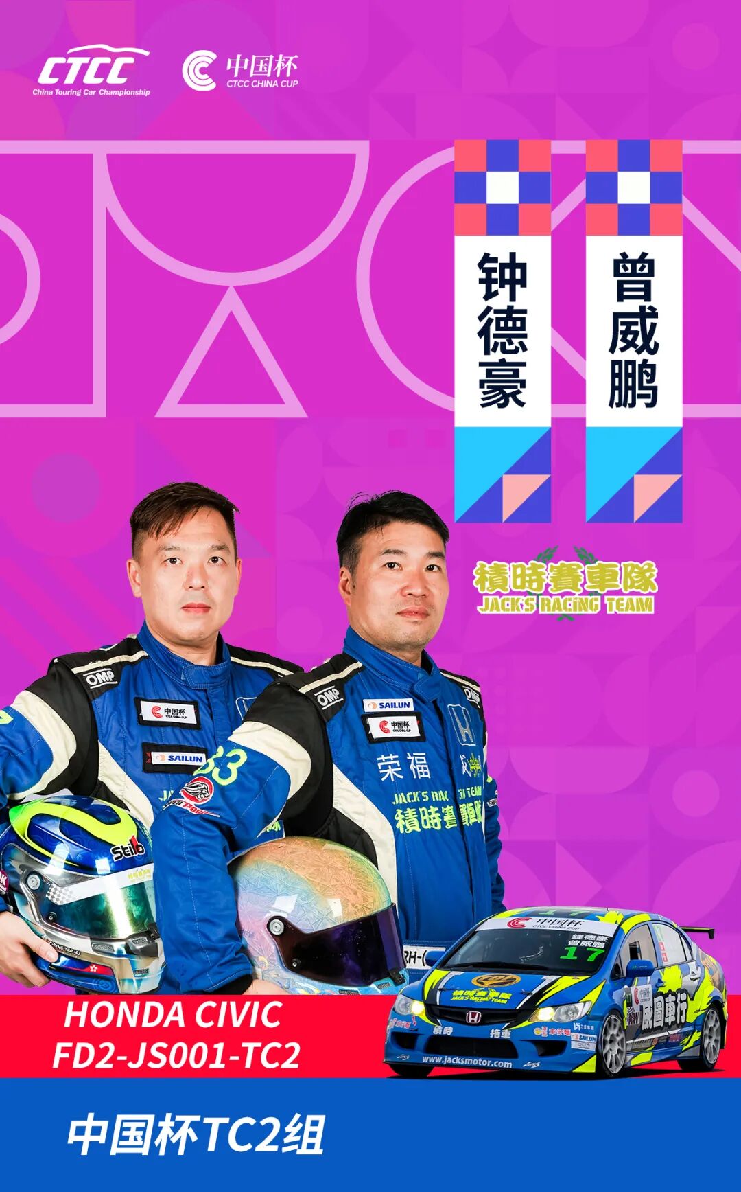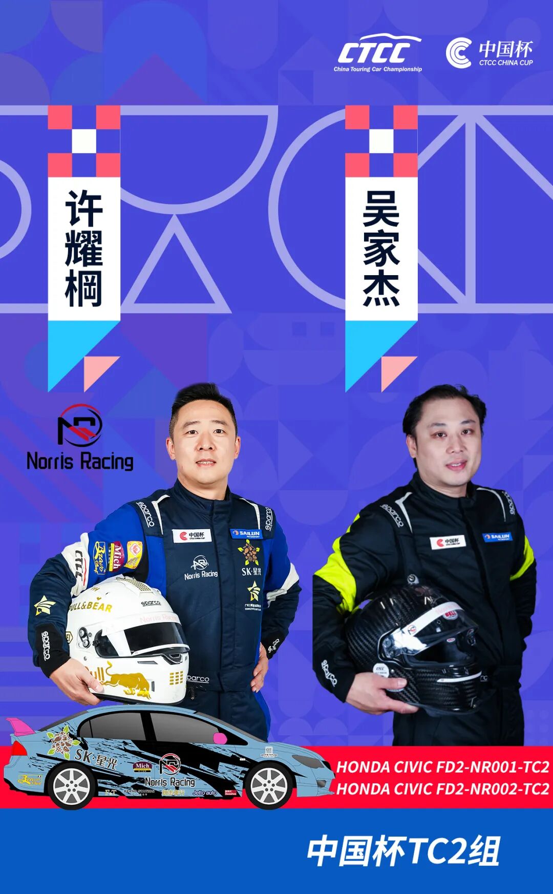 一个在华南赛道深耕多年,以均衡调校视为核心;一个是CTCC近年表现耀眼的“新军”,以稳定完赛为信条,在CTCC的舞台上连续三年稳步成长。两种路径,同一款战车。
