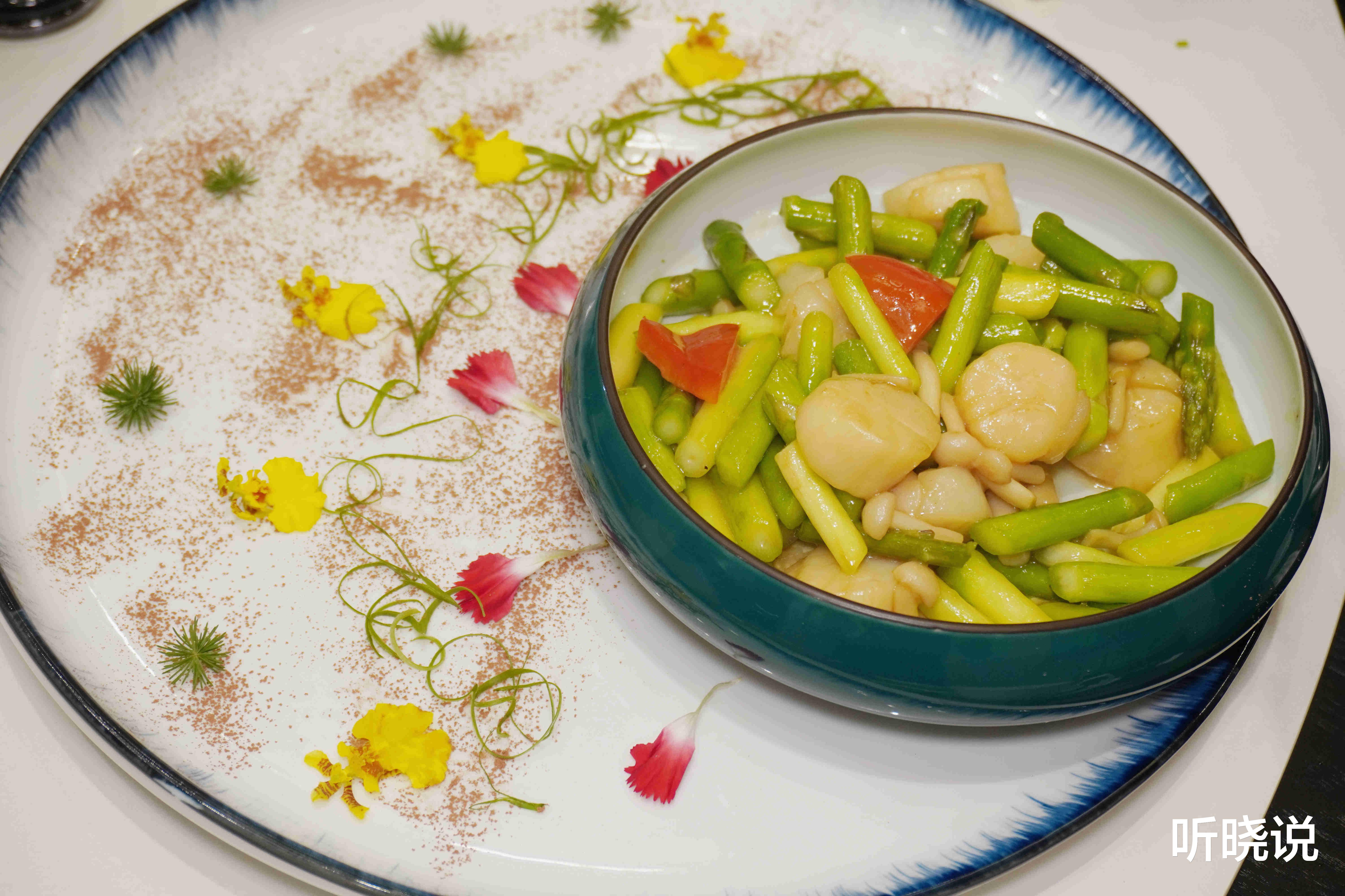 如意吉祥炒澳带也是一道颜值很高的菜品,嫩绿的芦笋搭配新鲜雪白的澳带,两种食材的口感搭配的相得益彰。