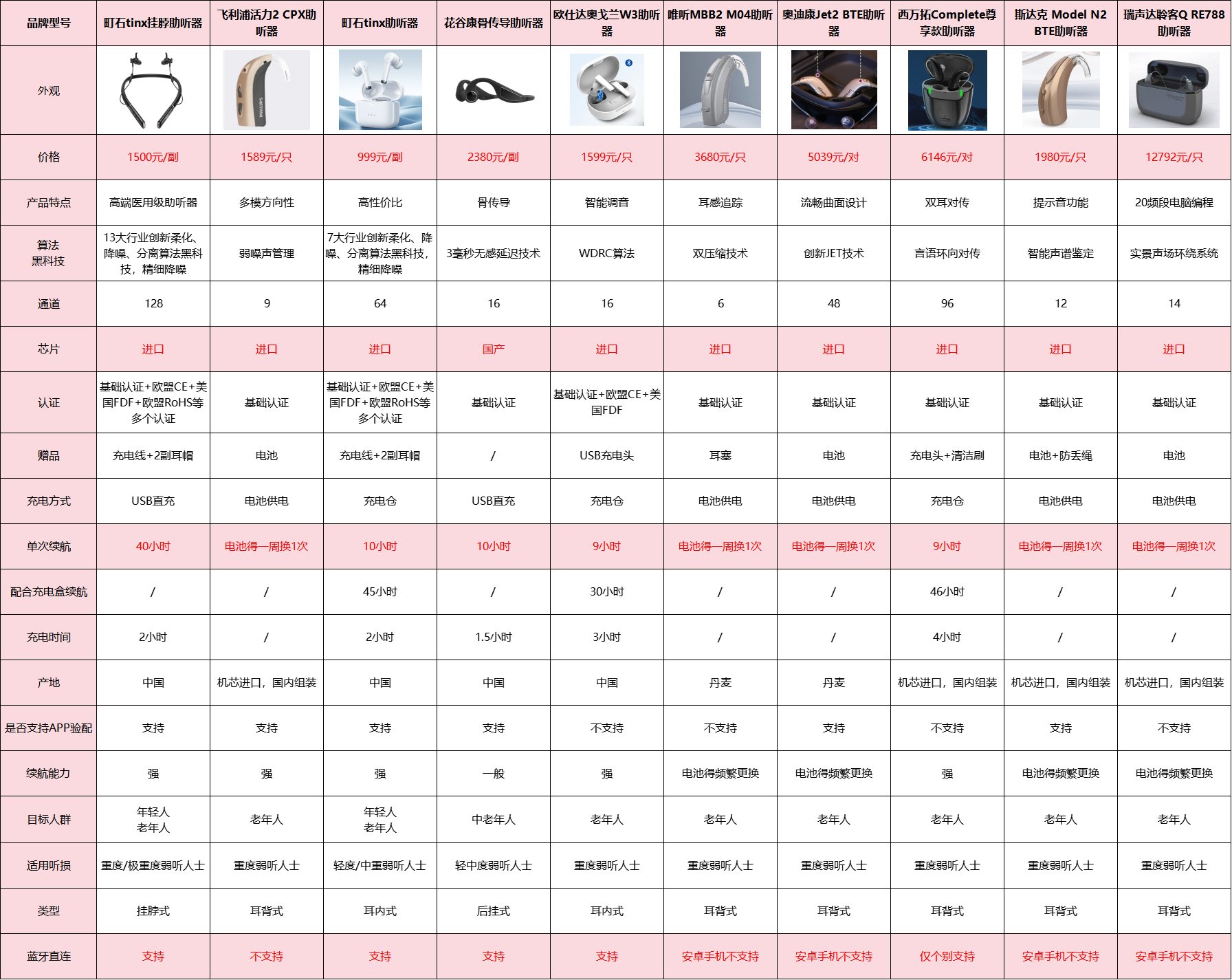 “在选购之前,仔细对比各款助听器的参数是非常重要的。通过下面的表格,您可以快速了解几款热门助听器的详细数据,包括价格、适用场景和功能特点等。这样一来,不管你是关注性价比还是功能需求,都能更精准地做出决策。”
