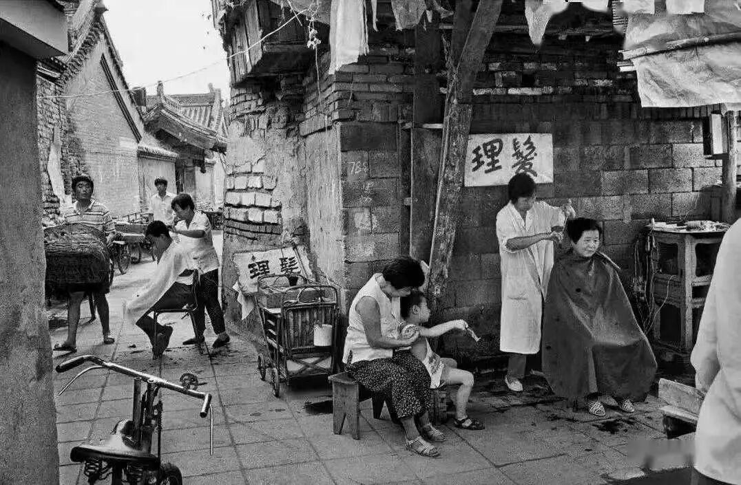 白塔寺旁的胡同,理发摊,1986,北京 ©朱宪民