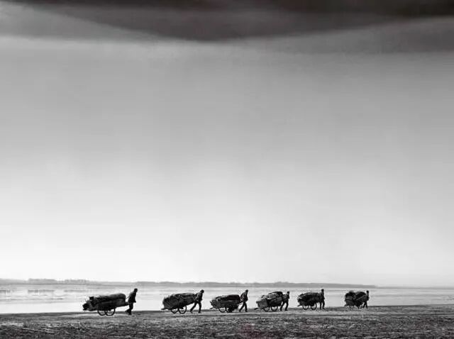 黄河岸边拉煤的地排车,1977,山东 ©朱宪民