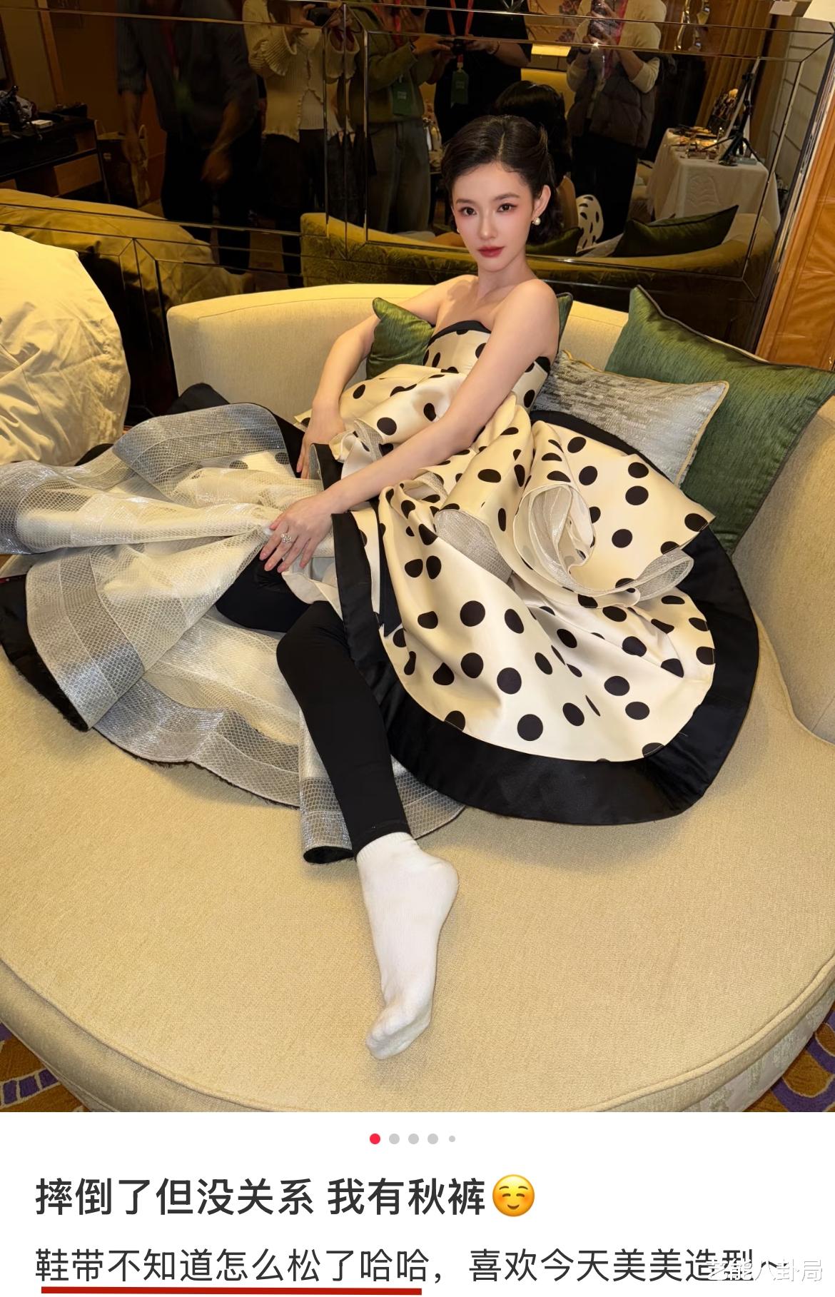 林允在后台发文称,鞋带不小心松开了,所以才摔得那么狼狈。