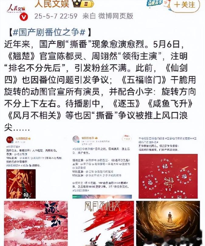去年5、6月,番位问题愈演愈烈,最终人民文娱出手,点名陈都灵和周翊然两人。
