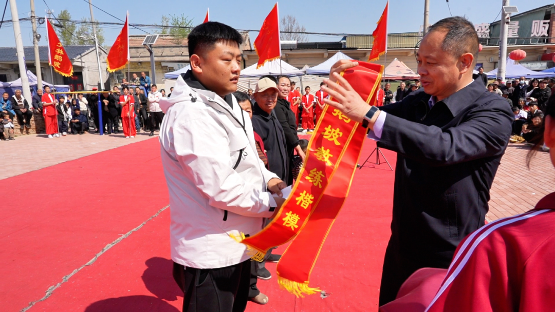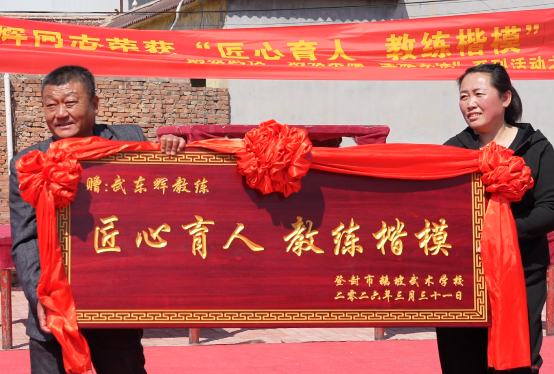 近日,鹅坡武校送奖队伍一行专程前往濮阳市清丰县六塔集村,隆重举行“鹅坡荣耀 星耀家校”送奖到家活动,现场郑重授予学校教练武东辉“匠心育人·教练楷模”荣誉称号,以表彰其在武术教育岗位上的突出贡献,传递学校对优秀教职工的认可与关怀。