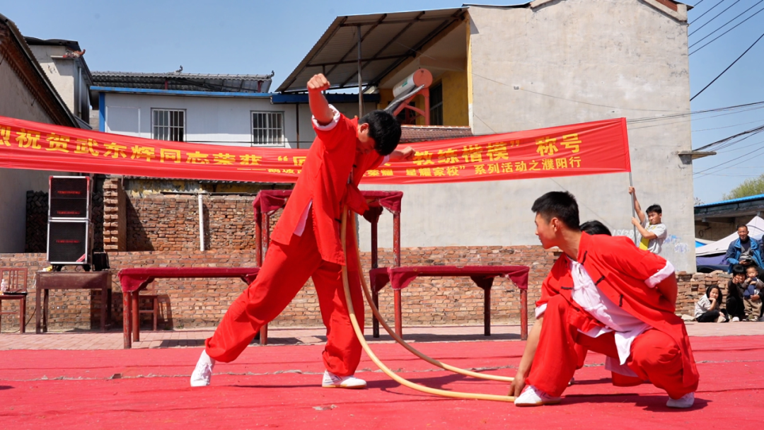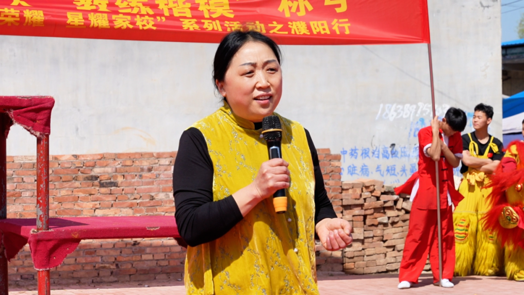 本次活动得到了当地村委会与各界人士的大力支持。出席活动的有清丰县六集村党支部书记、村委会主任梁晓将及村“两委”全体成员;登封市鹅坡武术学校党总支书记、执行校长常福晓;登封市鹅坡武术学校套路总教练、武术青少年训练处主任李小东等。此外,武东辉教练的家人、学生代表、家长代表及乡亲们也来到活动现场,齐聚一堂,共同见证这份荣耀时刻。活动由鹅坡集团文武建委副主任吴蓓主持。
