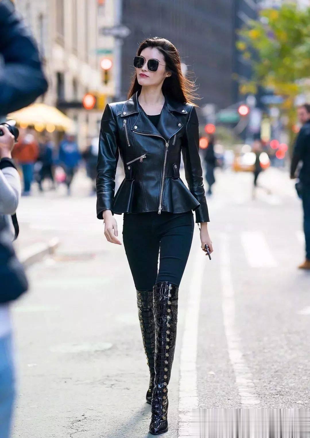 二、皮衣:酷飒感的"时尚宣言",打破性别的穿搭魔法如果说风衣是上海的"温柔刀",那么皮衣就是"锋利的剑"。在安福路,你总能看到穿着皮衣的年轻人——他们可能是骑着复古摩托的咖啡师,也可能是抱着电脑赶路的创意总监。这种自带"酷飒感"的单品,在上海被玩出了无数种可能。