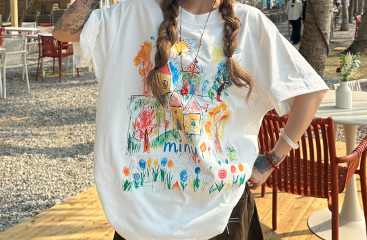 领口采用罗纹针织加固,袖口采用弹性剪裁,贴合手臂,不紧绷、不晃荡。走线工整,无多余线头,衣摆边缘经过锁边处理,不易开线,图案以简约小logo、纯色为主,印花采用环保油墨,日常打理简单,手洗、机洗都不易损坏。