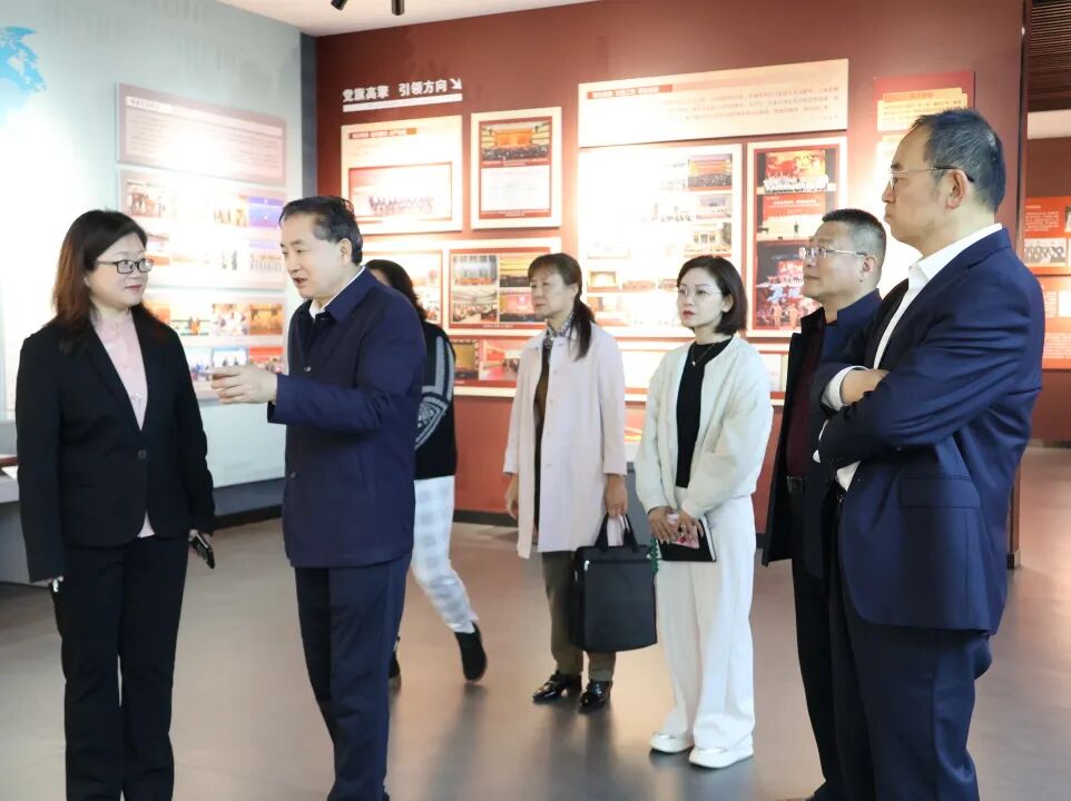 师生代表与叶茂一行赴校史馆学习。博物馆副馆长朱绍华讲解了师大百廿年来的办学历程与教育传承。师生在厚重校史中感悟师者初心,坚定了扎根教育、矢志报国的信念。