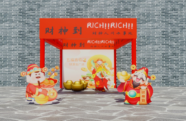 财神们手捧金元宝向你挥手,接住他们手中的金元宝,来和他们合影吧~