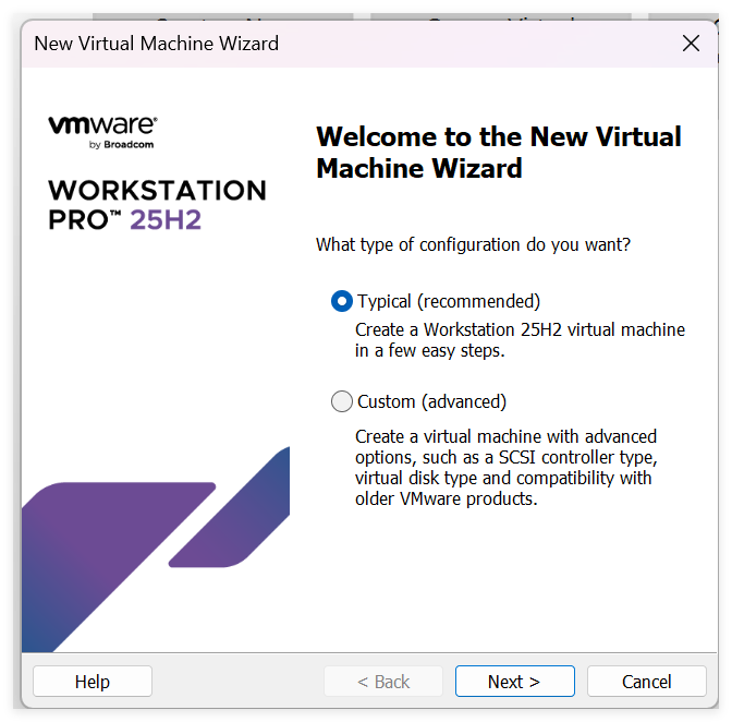 在 Home 页面选择“Create a New Virtual Machine ” 后弹出下图所示页面: