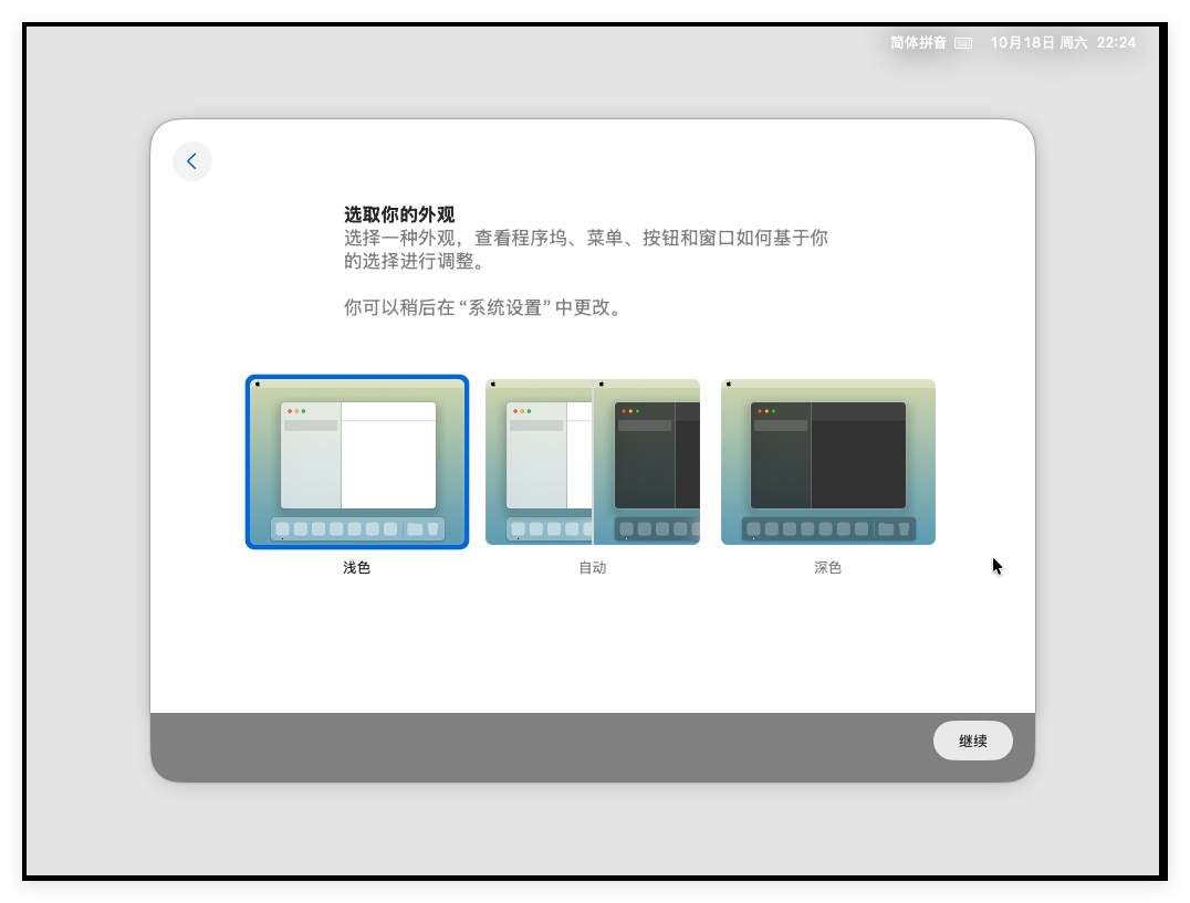 点击“继续”后开始配置外观,此处默认即可: