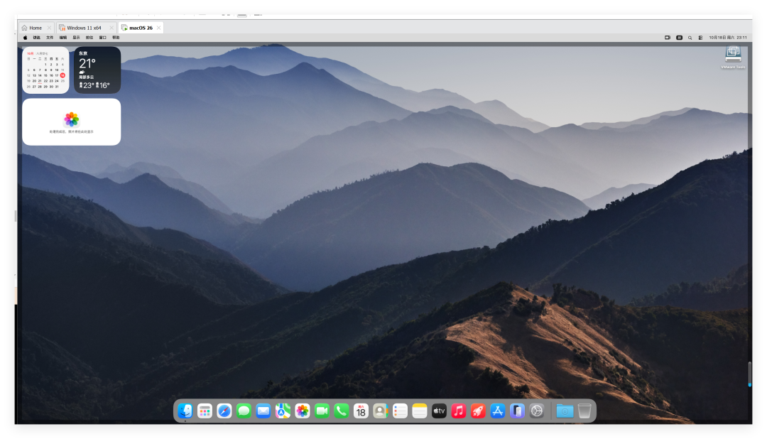 创建之后看到主页面出现新创建的MacOS 26 虚拟机: