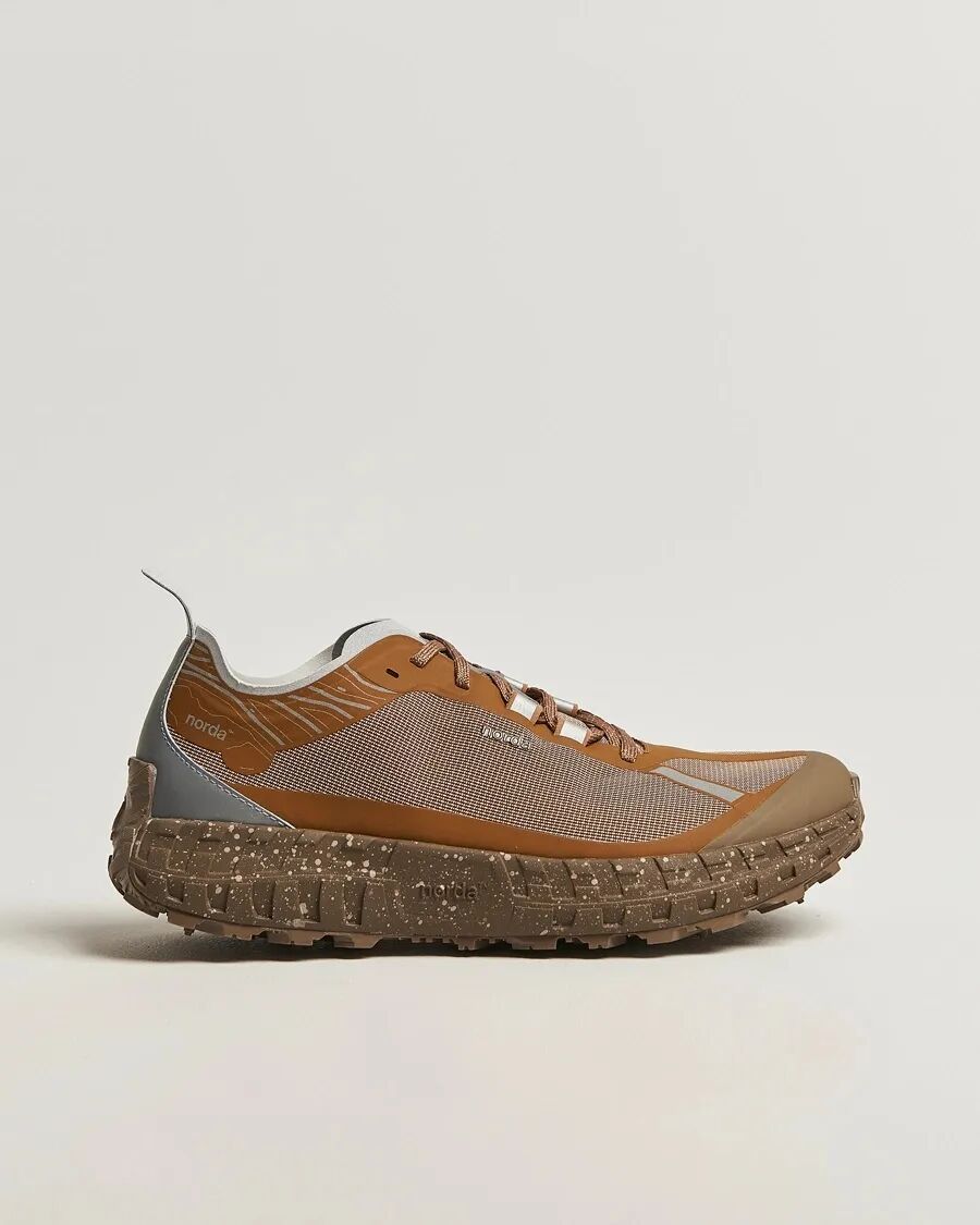 越野跑领域的超级跑车想必就不用多介绍了,值得关注的是这次的升级看似相同,却在中底大有不同。主要是 001A 使用了 Arnitel TPEE 复合材料,这种材料是 005 鞋款的核心成分,只是配方略有不同。而鞋面也是采用与 005 相同的 Bio-Dyneema 材质,在耐磨性和抗穿刺性方面不用质疑。配色一向是 norda 的拿手好戏,泥土色加上泼墨图案的升级中底,很好还原了越野赛场的感觉。